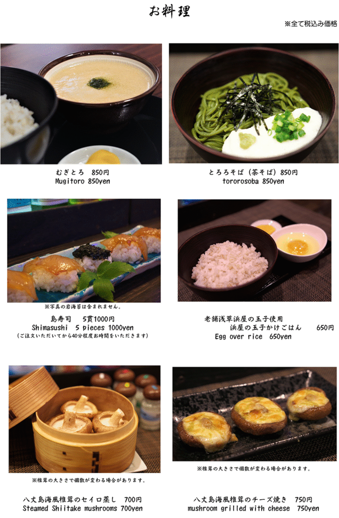 伝統のむぎとろと東京諸島の料理を
